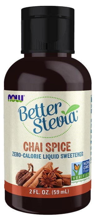 Better Stevia Zero-Calorie Liquid Sweetener, Chai Spice 2 fl oz (59 mL), by NOW