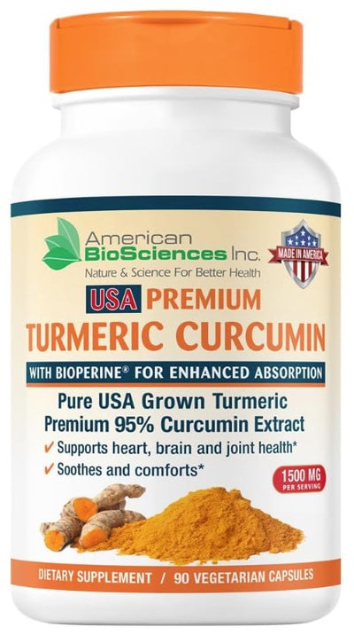 USA Premium Turmeric Curcumin, 1500 mg 90 Vegetarian Capsules, by American Biosciences