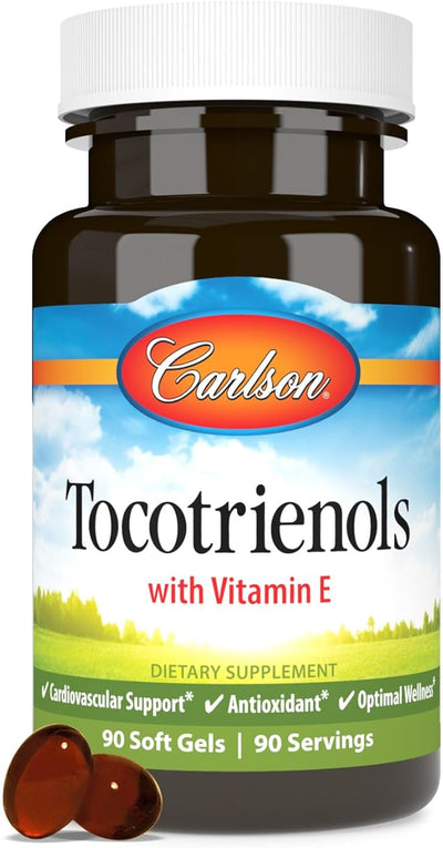 Carlson Tocotrienols are an excellent source of vitamin E and a potent way to provide additional support to a healthy cardiovascular system. The vitamin E family consists of tocopherols and tocotrienols. While alpha-tocopherol is the most commonly found form of vitamin E, tocotrienols have up to 50 times the antioxidant potential of tocopherols. The latest research suggests that along with a healthy diet and exercise, delta tocotrienols specifically are the most beneficial for supporting healthy cholesterol already within the normal range, triglycerides and cellular health.