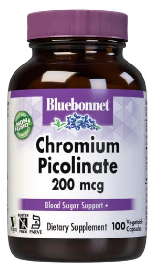 Bluebonnet's Chromium Picolinate 200 mcg Capsules contain pure yeast-free chromium in a chelate of picolinic acid. Available in easy-to-swallow vegetable capsule for maximum assimilation and absorption.