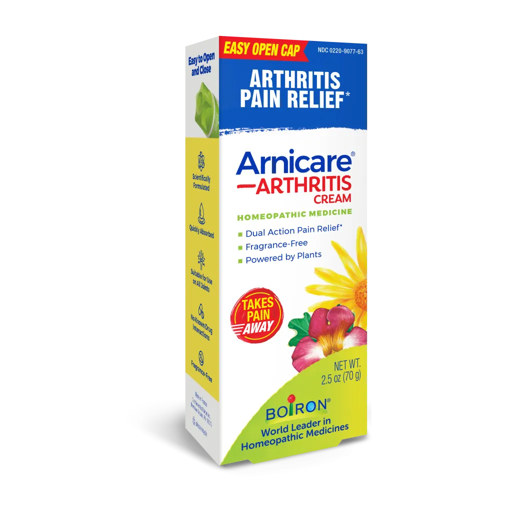 Arnicare Arthritis Cream by Boiron combines two pain relievers in one formula for dual action pain relief where you need it most. It’s scientifically formulated with Arnica and Harpagophytum (devil’s claw), which work together to reduce minor stiffness, soreness, and joint pain of arthritis.* This fragrance-free cream quickly absorbs into skin to take away pain at its source without any stinging or burning sensation. It’s suitable for use on all joints and there’s no need to measure what you apply, unlike diclofenac sodium gels.