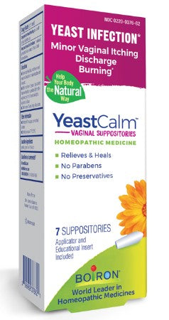 If you suffer from yeast infections, it’s time to get relief. YeastCalm by Boiron calms the discomfort of minor vaginal itching and burning from yeast infections with plant-based and other pure active ingredients.* Plus, it’s powered by borax and Calendula to heal delicate vaginal tissue.* YeastCalm is a comfortable and practical solution that’s free of parabens and preservatives. These once-daily overnight suppositories conveniently deliver treatment directly to the affected area for continued improvement throughout the night.