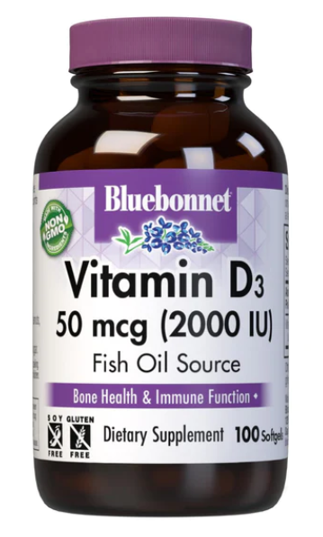 Vitamin D3 (as 2000 IU cholecalciferol from fish liver oil) 50 mcg.