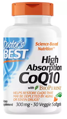 Doctor's Best High Absorption CoQ10 contains pure coenzyme Q10 (Ubiquinone) plus BioPerine. CoQ10 helps support heart function and helps promote energy production in the cells. It is vital to the production of ATP (adenosine triphosphate), especially in the heart. Stress, free radicals, statin medications and aging can impact CoQ10 levels. CoQ10 is very important for the creation of energy, muscular contraction and the synthesis of protein. Studies have shown that BioPerine increases CoQ10 absorption.