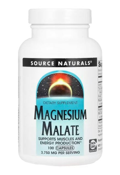 Source Naturals Magnesium Malate is a compound of magnesium and malic acid. It supports proper muscle function, cardiovascular health, and energy production. Malic acid is a natural fruit acid that is present in most cells in the body and is an intermediate in the Krebs cycle, where energy is captured during the metabolism of carbs and fats. Magnesium is an essential cofactor for over 300 enzymatic reactions in metabolism, ATP synthesis and energy production. Magnesium plays important roles in muscle relaxation, because of its function as a cofactor for enzymes and because of its ability to counterbalance calcium in the cell.