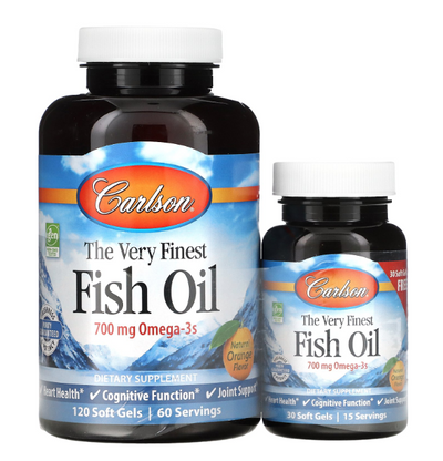The Very Finest Fish Oil, Orange, 700 mg 120 + 30 Soft Gels, by Carlson