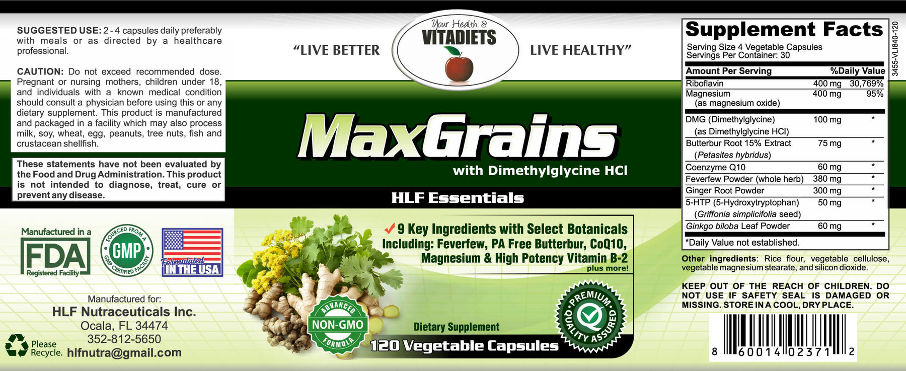 MaxGrains For Migraines and Headaches Relief 120 Vegetable Capsules by Your Health & Vitadiets