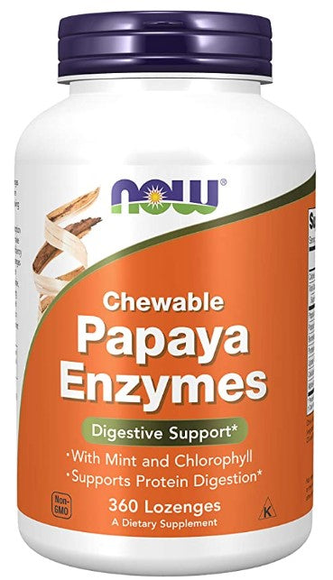 Digestive enzymes are essential to the body's absorption and full use of food. The capacity of the body to make enzymes diminishes with age, and therefore the efficiency of digestion declines. NOW Papaya Enzyme Lozenges have a refreshing taste and support digestion when taken after meals. Our lozenges are made with whole, unripe, spray dried Papaya powder, and have 40 mg of Papaya per Lozenge. In addition, Protease, Lipase and Cellulase have been included for a full spectrum of enzymatic activity. This tablet is also useful as a mint breath freshener.