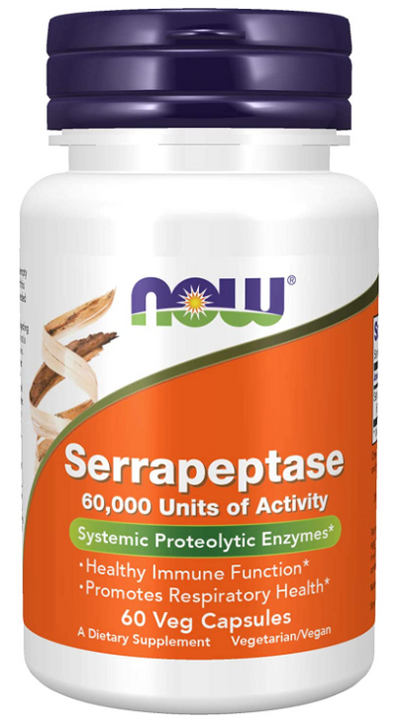 Serrapeptase (serratiopeptidase) is a protein-digesting enzyme isolated from the friendly bacterium Serratia marcescens.* Studies indicate that serrapeptase is absorbed intact from the digestive tract and that it acts systemically to support healthy immune system functions and promote the body’s normal healing processes.* Some evidence suggests that serrapeptase may support respiratory health by helping to maintain normal mucus secretions.