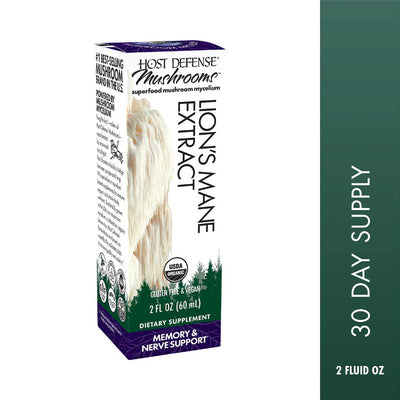 Host Defense® Lion’s Mane Extract uses Certified Organic mushroom mycelium and fruitbodies, with a full spectrum of constituents: polysaccharides (beta glucans, arabinoxylane, glucose, xylose, galactose and mannose), glycoproteins, ergosterols, triterpenoids and other myco-nutrients, which are essential for Supporting Natural Immunity.*