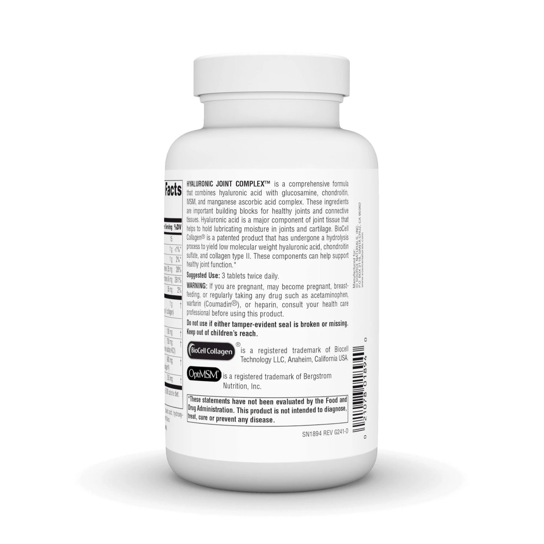 Hyaluronic Joint Complex™ with Glucosamine, Chondroitin, and MSM 120 Tablets by Source Naturals
