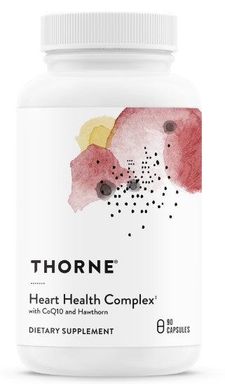 Thorne's Heart Health Complex combines CoQ10 with taurine, an amino acid that research indicates can support already normal levels of cholesterol, and which, by aiding in the regulation of intracellular calcium levels, helps protect the heart muscle and support cardiac rhythm.* The flavonoid compounds in hawthorn (Crataegus oxycantha) appear to strengthen blood vessels and support cardiac function.* Hawthorn has also been shown to help maintain already normal blood pressure, heart rate, and exercise capacity.* The minerals in Heart Health Complex – magnesium and potassium – are necessary for optimal cardiovascular function.*