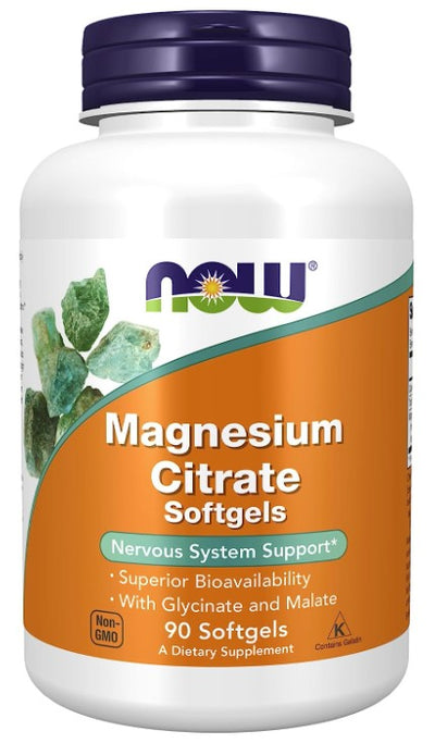 Magnesium is a mineral that is critical for energy production and metabolism, muscle contraction, nerve impulse transmission, and bone mineralization. It is a required cofactor for an estimated 300 enzymes. Among the reactions catalyzed by these enzymes are fatty acid synthesis, protein synthesis, and glucose metabolism. Magnesium status is also important for regulation of calcium balance through its effects on the parathyroid gland. Magnesium Citrate is easily absorbed, and NOW® Magnesium Citrate Softgels are provided in a liquid base with chelated forms for superior bioavailability.