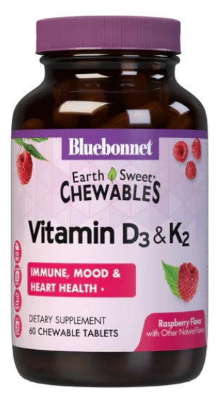 EarthSweet® Chewables Vitamin D3 & K2, 60 Raspberry Chewable Tablets, by Bluebonnet