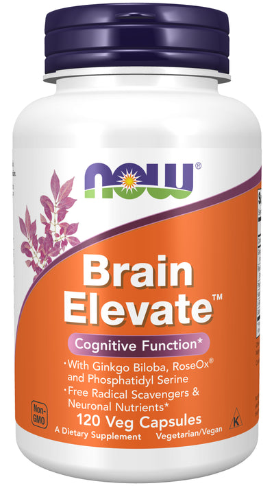 NOW Brain Elevate is scientifically formulated to support healthy cerebral functions. Brain Elevate features Ginkgo biloba and RoseOx, two plant extracts known for their free radical scavenging properties. This product is also formulated with Phosphatidyl Serine, L-Glutamine, and Choline as critical brain nutrients to promote optimal results.