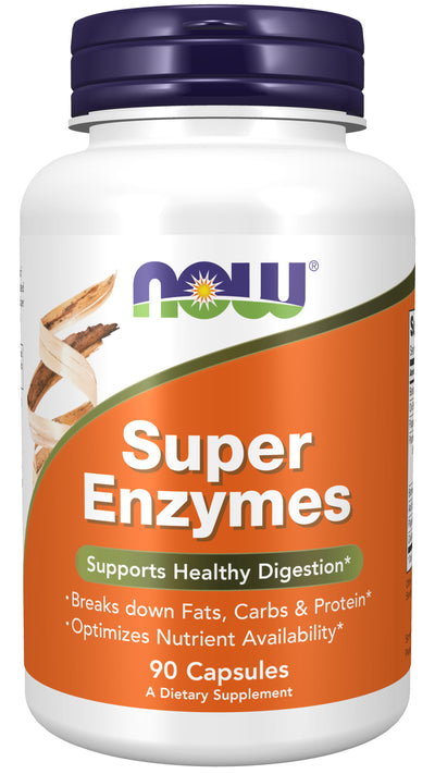 NOW Super Enzymes is a comprehensive blend of enzymes that supports healthy digestion. Formulated with Bromelain, Ox Bile, Pancreatin and Papain, Super Enzymes helps to optimize the breakdown of fats, carbohydrates and protein.