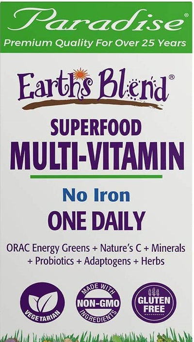 Paradise Herbs, Earth's Blend, One Daily Superfood Multi-Vitamin, No Iron, 30 Vegetarian Capsules