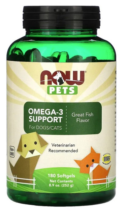 Omega-3 Support for Dogs/Cats, Great Fish, 180 Softgels, 8.9 oz (252 g), by NOW Pets
