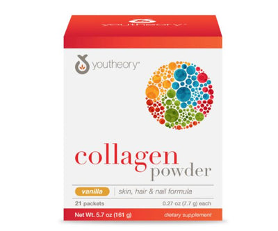 Youtheory Collagen Powder is designed to help counteract age-related collagen loss. Supplying 6,000 mg of hydrolyzed collagen per serving, this convenient and easy-to-use product helps replenish essential beauty proteins, while delivering powerful health benefits. This formula is enhanced with vitamin C to aid internal collagen production and biotin to support health & beauty factors.