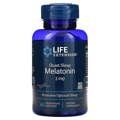 Quiet Sleep is a comprehensive sleep support supplement. It combines 3 mg of immediate-release melatonin with vitamin C, B12, inositol and more to promote healthy sleep.
