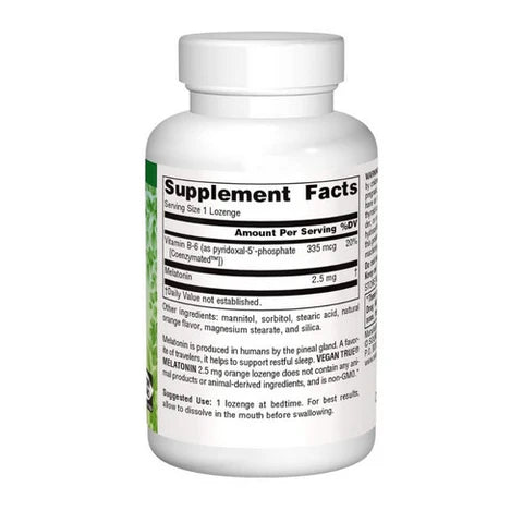 Melatonin is produced in humans by the pineal gland. A favorite of travelers, it helps to support restful sleep. Vegan True® Melatonin 2.5 mg orange lozenge does not contain any animal products or animal-derived ingredients, and is non-GMO.