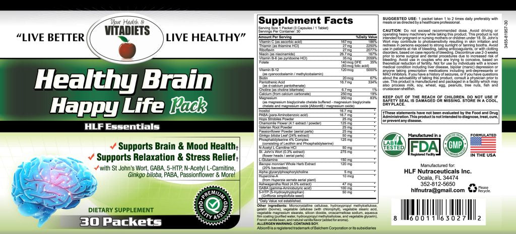 Healthy Brain Happy Life Pack 30 Packets by Your Health & Vitadiets