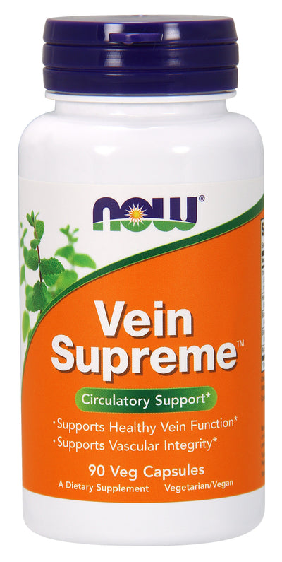 NOW Vein Supreme is a combination of botanical ingredients for the support of healthy vascular function. Vein Supreme features Trunorin, a clinically tested and patented extract of Prickly Ash Bark, whose characteristic constituents have been found to promote normal venous function and integrity. Also included are Butcher's Broom and Horse Chestnut Seed Extract, both of which have long histories of use for the support of healthy veins.