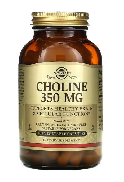 Choline, a member of the B Complex, is a component of cell membranes and provides key support for optimal cellular function. It is involved in the chemistry of the brain, where it is used to synthesize acetylcholine, a critical neurotransmitter required for brain function. It also promotes normal fat metabolism and provides liver support.