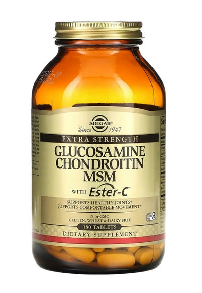 Solgar® Extra Strength Glucosamine Chondroitin MSM with Ester-C® Tablet is ideal for anyone seeking extra nutritional support for their cartilage and joints. This formula is specially designed to nourish your joints and cartilage, bring fluid into the joints and helps maintain flexibility, mobility and comfortable movement. This formula also contains Ester-C® to support joint health by helping to maintain enzymes necessary for collagen formation in their active state.
