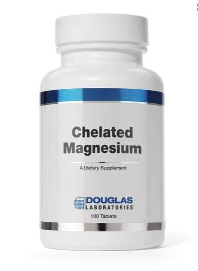 Chelated Magnesium provided by Douglas Laboratories, supplies 100 mg of elemental magnesium in the form magnesium amino acid chelate.