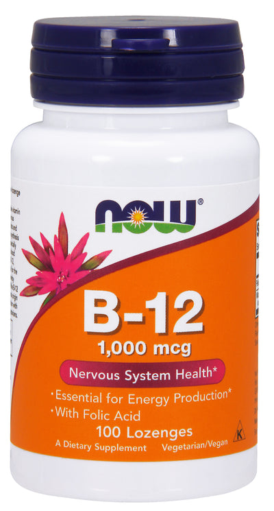 Vitamin B-12 (Cyanocobalamin) is a water soluble vitamin necessary for the maintenance of a healthy nervous system and for the production of energy from fats and proteins. Vitamin B-12 is also essential for the synthesis of DNA during cell division and therefore is especially important for rapidly multiplying cells, such as blood cells. In addition, adequate intake of Vitamin B-12, along with Folic Acid and Vitamin B-6, is critical for the conversion of homocysteine to methionine, thereby supporting a healthy cardiovascular system. While B-12 is stored in the liver, dietary sources are of animal origin only (meat and dairy). Therefore, supplementation with B-12 may be especially important for strict vegetarians.