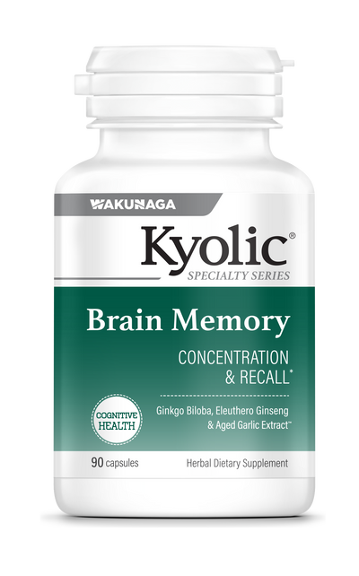 Kyolic Brain Memory is a proprietary, triple-extract herbal blend containing a combination of Aged Garlic Extract, Ginseng Extract and Ginkgo Biloba Extract to support healthy brain function and memory.